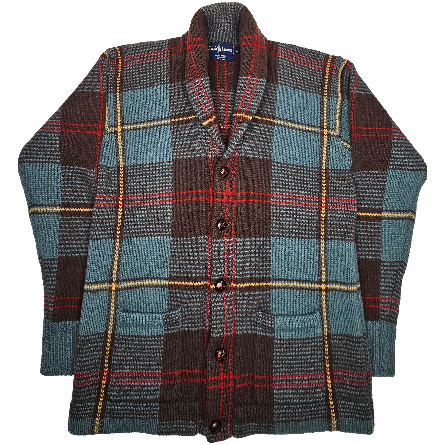 RALPH LAUREN - SHAWL COLLAR FLANNEL KNIT CARDIGAN
