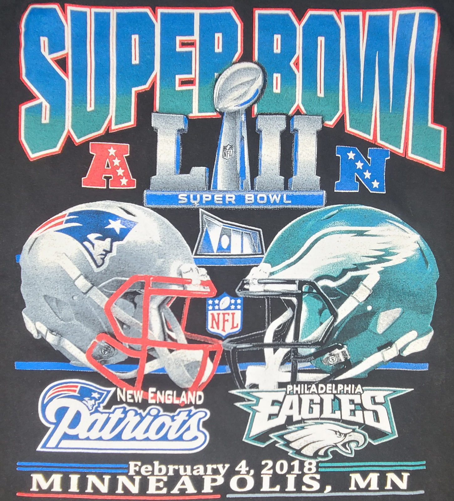 SUPER BOWL LII 2018 - NEW ENGLAND PATRIOTS VS. PHILADELPHIA EAGLES TEE SHIRT