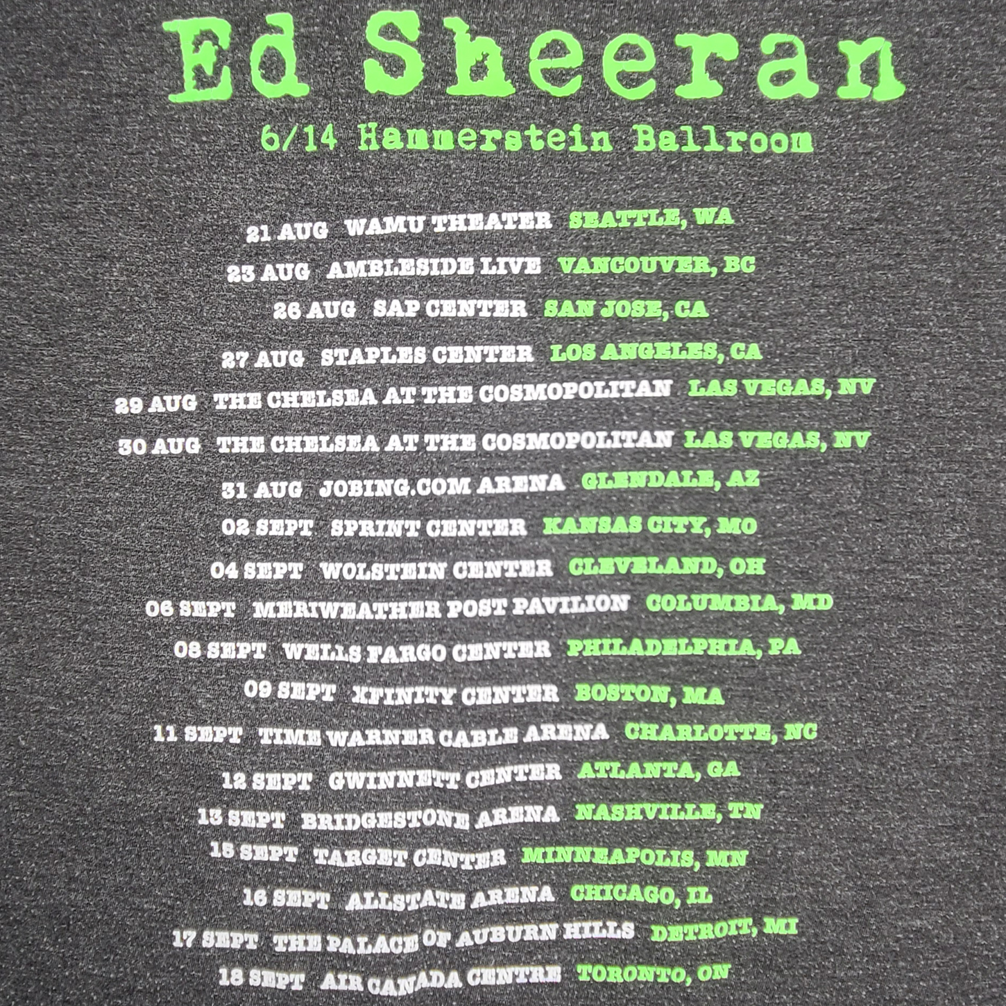 ED SHEERAN - 2014 X TOUR TEE